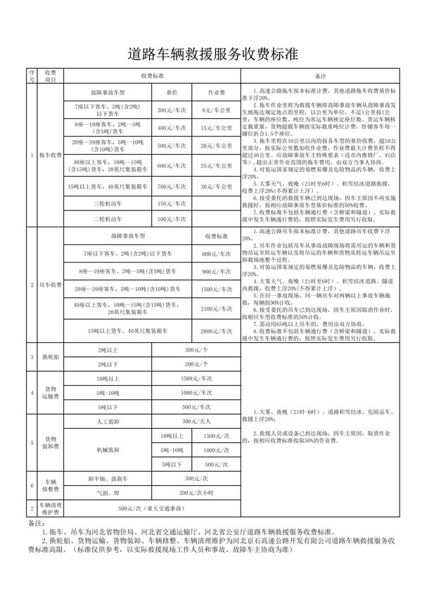 河北京石高速公路開發(fā)有限公司車輛救援服務(wù)信息公示表