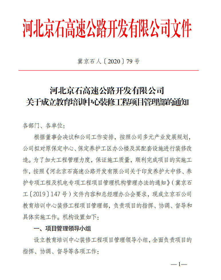 關(guān)于成立教育培訓(xùn)中心裝修工程項目管理部的通知