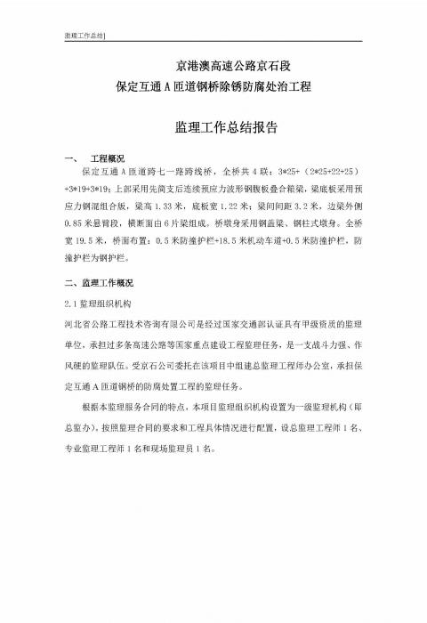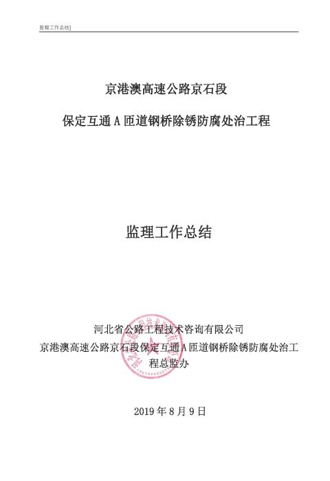 保定互通A匝道鋼橋除銹監(jiān)理報(bào)告