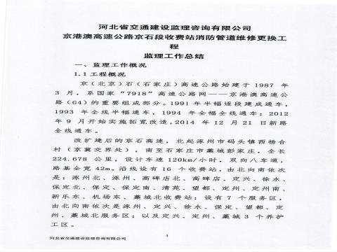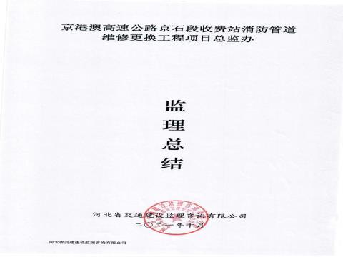 京港澳高速公路京石段收費站消防管道維修更換工程監(jiān)理工作總結(jié)