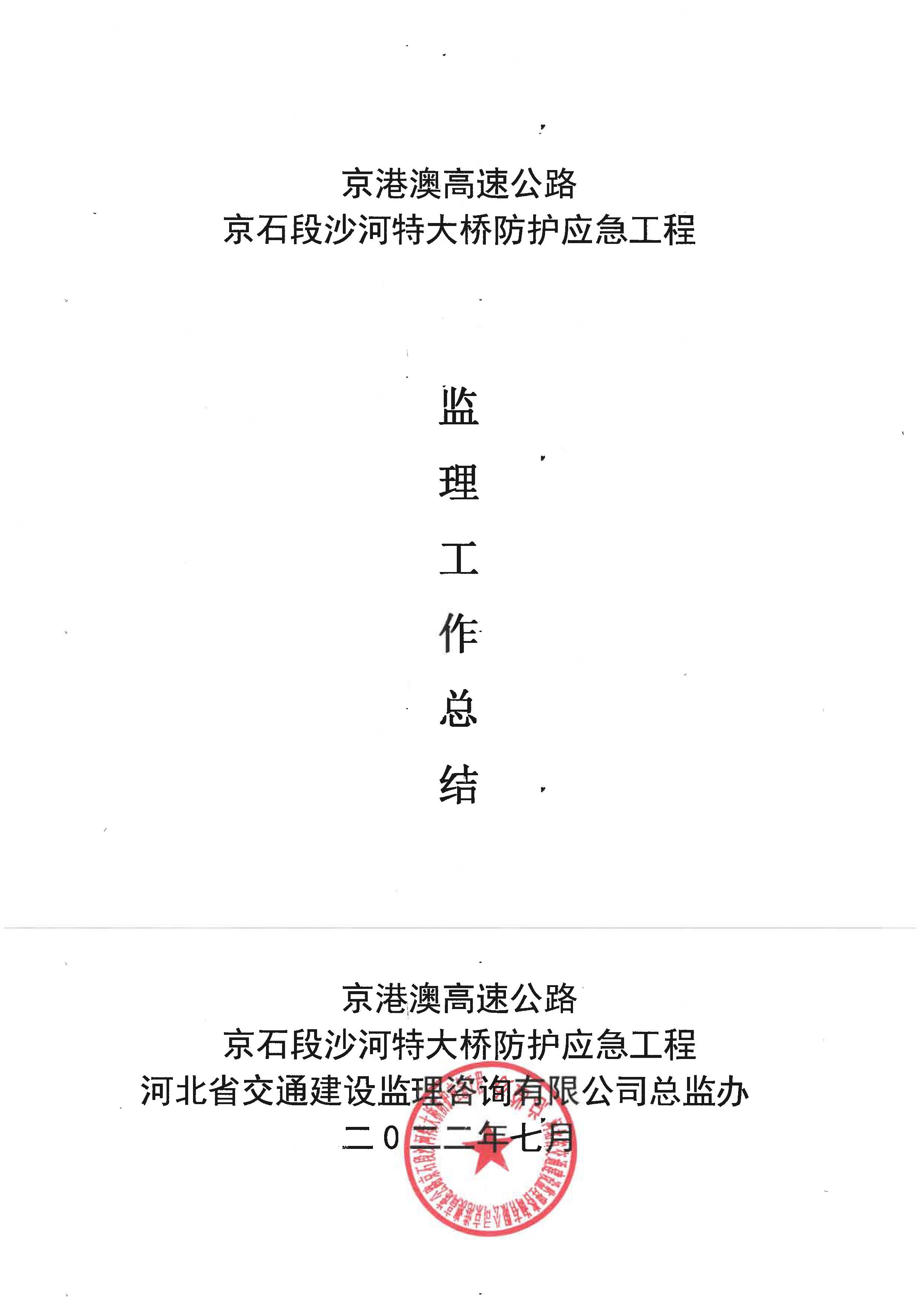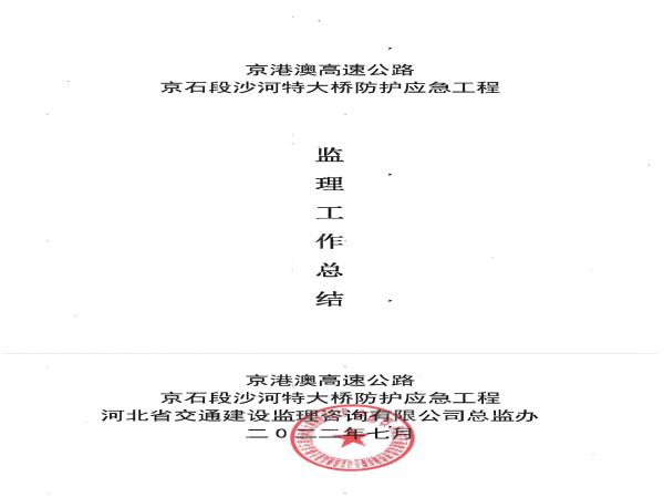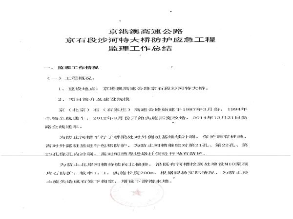京港澳高速京石段沙河特大橋防護(hù)應(yīng)急工程監(jiān)理報(bào)告