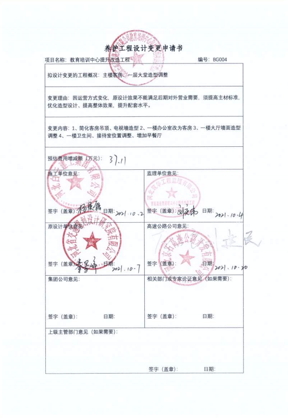 河北京石高速公路開發(fā)有限公司教育培訓(xùn)中心提升改造工程一期設(shè)計變更