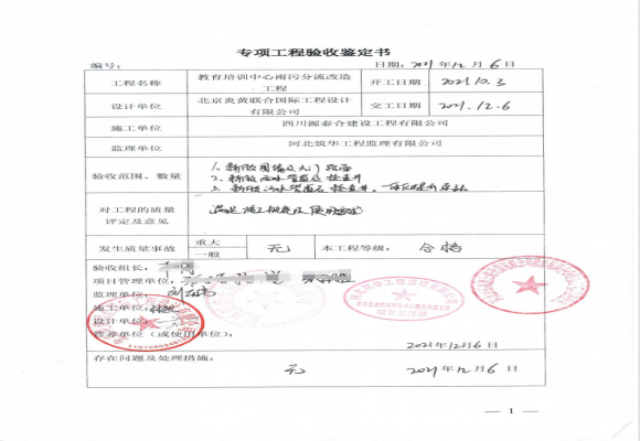 河北京石高速公路開發(fā)有限公司教育培訓(xùn)中心雨污分流改造工程竣工驗收