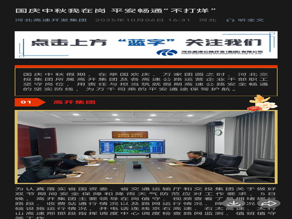 【河北高速開發(fā)集團(tuán)】國(guó)慶中秋我在崗 平安暢通“不打烊”