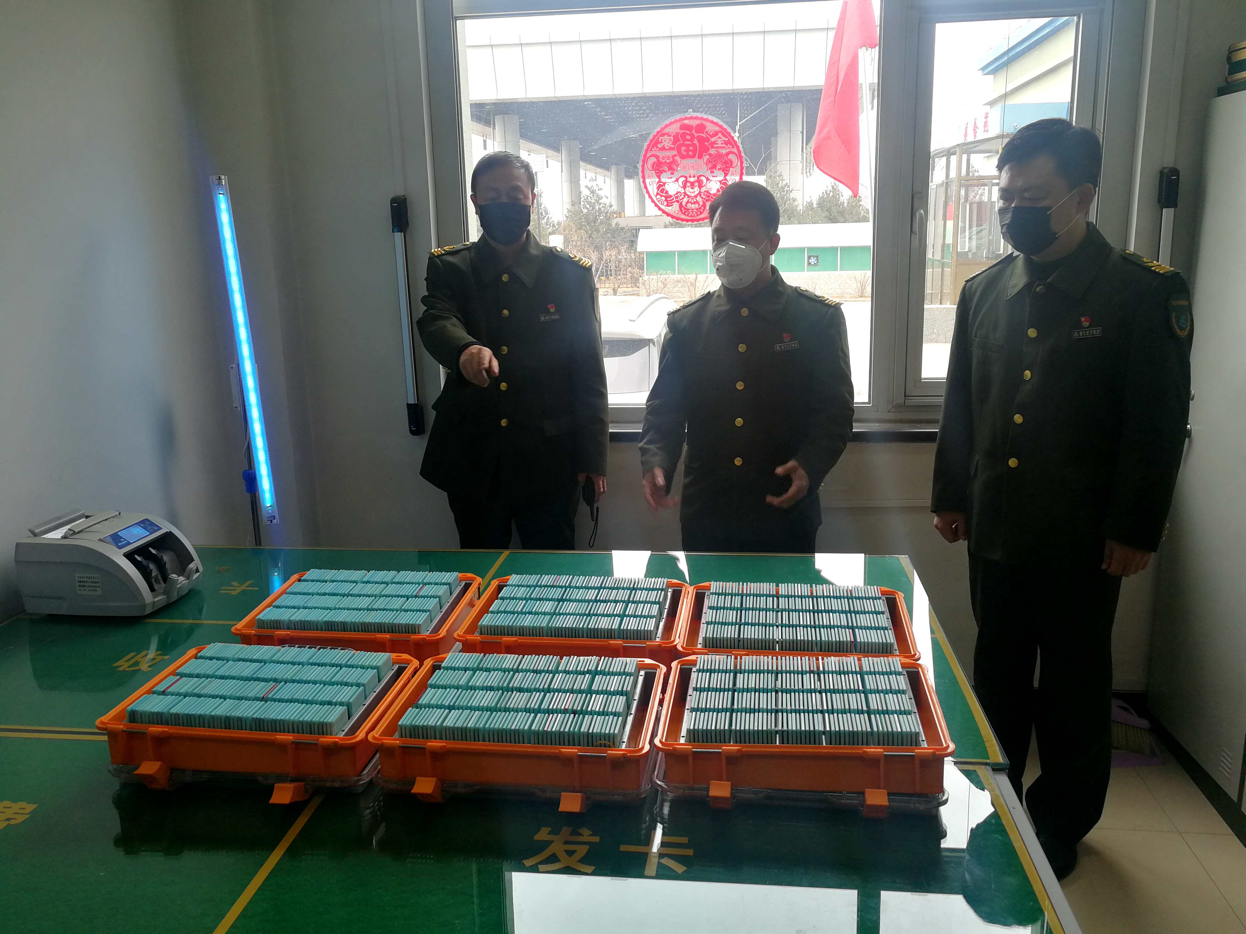 后勤保障工作全面到位。為打贏這場疫情防控阻擊戰(zhàn),緩解同志們工作上的壓力,減輕他們的勞動強(qiáng)度,支部一班人還提出了“三個帶頭”:領(lǐng)導(dǎo)帶頭做好收費(fèi)崗位替崗工作,黨員帶頭分擔(dān)綠通檢驗工作,退轉(zhuǎn)軍人帶頭分擔(dān)保障工作??紤]到一些老同志身體素質(zhì)等因素,從春節(jié)假期到現(xiàn)在仍采取四班三運(yùn)轉(zhuǎn)的倒班方式,每個班組上崗前,值班人員電話提醒身體不好的同志備足藥品,如發(fā)現(xiàn)特殊情況不能上崗的,備勤人員立即補(bǔ)位。針對各項防疫物資登記造冊,建立《防疫物資臺賬》、《防疫物資盤點表》、《防疫物資入庫登記表》、《防疫物資領(lǐng)用登記表》等,確保時時掌握物資使用情況。