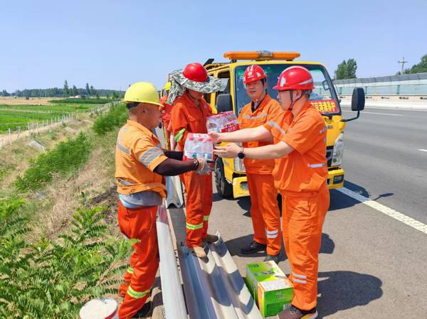 近期持續(xù)高溫,高速養(yǎng)護(hù)任務(wù)重、難度大,一線養(yǎng)護(hù)工戰(zhàn)高溫、斗酷暑,守護(hù)京石路安全。此次慰問,不僅送去防暑物資,更傳遞了對一線勞動(dòng)者的尊重,激勵(lì)大家繼續(xù)以飽滿熱情,為高速公路“暢安舒美”保駕護(hù)航,讓高溫下的高速路,因這份關(guān)懷更顯溫情。
