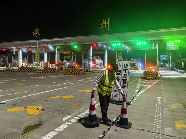 零點整,收費站嚴格按照政策要求,準時開啟所有免費車道。同時,工作人員將清晰標注“小型客車(7座以下)”與“貨車及客車(7座以上)”的指引牌,放置在內(nèi)廣場顯著位置,幫助過往司機快速區(qū)分車道類型,減少判斷時間。