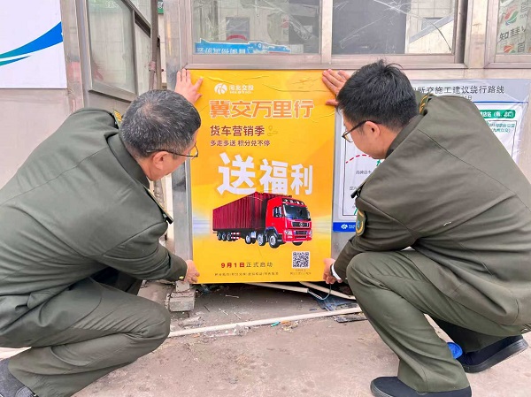 活動現(xiàn)場,小組工作人員首先在物流園顯眼位置張貼宣傳海報,營造濃厚推廣氛圍,快速吸引過往貨車司機關(guān)注。隨后,針對司機群體出行需求,工作人員主動上前,向過往司機詳細介紹小程序的各項功能,清晰解答司機關(guān)于注冊流程、使用場景的疑問。同時,工作人員引導(dǎo)司機現(xiàn)場掃碼注冊,手把手協(xié)助完成操作,確保司機能快速掌握使用方法。