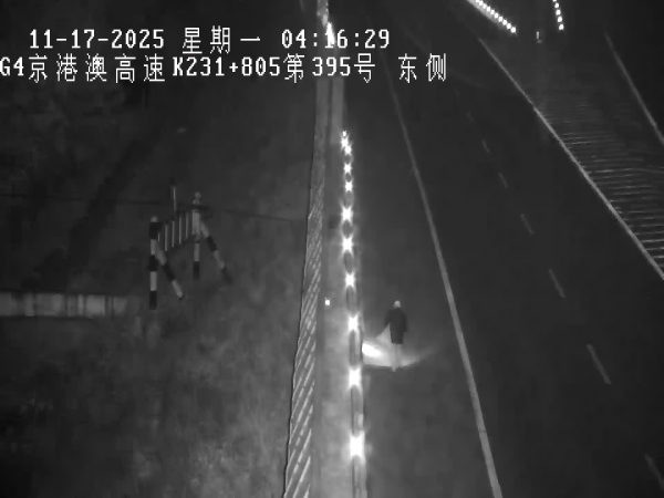 2025年11月17日3時(shí)57分,智慧調(diào)度監(jiān)控中心接到省中心電話通知,京石高速石家莊方向K233處快車道有行人走動,行人在車道走動不僅違反了高速公路管理規(guī)定,更將自身生命安全置于險(xiǎn)境,同時(shí)也對過往車輛造成干擾,極易引發(fā)交通事故。