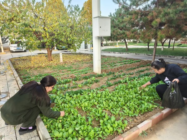 走進菜園,映入眼簾的是一排排整齊劃一的小白菜,它們在冬日的陽光下、在落葉的襯托下顯得格外耀眼。這些小白菜是清苑站全體員工共同努力的結果,從播種到收獲,每一顆白菜都承載著大家的汗水與希望。