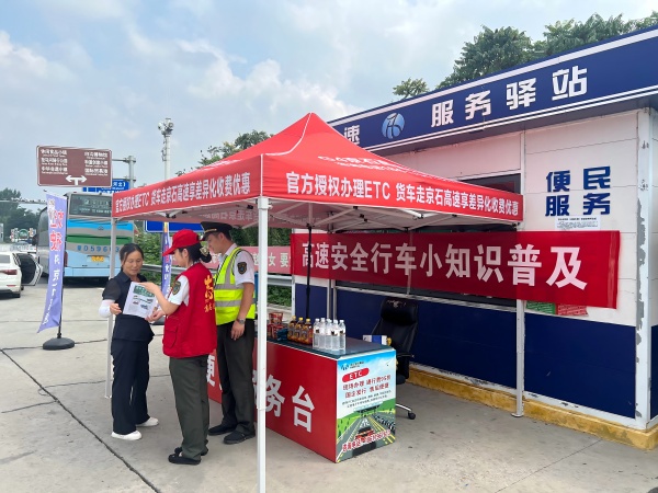 活動(dòng)現(xiàn)場(chǎng),定興站工作人員在站口設(shè)置了醒目且溫馨的宣傳臺(tái)和咨詢點(diǎn)。在炎熱的夏季為過(guò)往的司乘人員準(zhǔn)備了礦泉水、濕巾等防暑用品??紤]到夏季高溫天氣對(duì)高速行車的影響,工作人員著重開展了夏季高速安全行車小知識(shí)普及活動(dòng)。從車輛輪胎的保養(yǎng)、發(fā)動(dòng)機(jī)的散熱,到高溫天氣下駕駛員的疲勞預(yù)防等方面耐心細(xì)致地為司乘人員講解,提醒他們注意夏季行車的安全隱患。