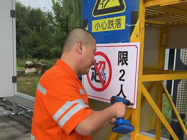 安全生產(chǎn)無(wú)小事,細(xì)微之處見真章。近日,高碑店站聚焦綠通驗(yàn)貨梯這一綠通查驗(yàn)高頻使用設(shè)施,扎實(shí)推進(jìn)安全生產(chǎn)細(xì)化工作,為驗(yàn)貨梯增設(shè)標(biāo)識(shí),通過增設(shè)“限載人數(shù)”標(biāo)識(shí),筑牢安全防線。