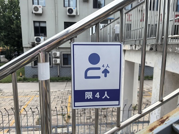 現(xiàn)場(chǎng)可見(jiàn)“限4人”標(biāo)識(shí)明確了樓梯同時(shí)承載的人員數(shù)量上限,防止因人員過(guò)度聚集引發(fā)樓梯荷載超標(biāo)問(wèn)題;“禁止跳躍”標(biāo)識(shí)以醒目的圖案和文字,警示通行人員切勿在樓梯上做出跳躍等危險(xiǎn)動(dòng)作;“當(dāng)心跌落”標(biāo)識(shí)則時(shí)刻提醒大家注意腳下,防范跌落風(fēng)險(xiǎn)。